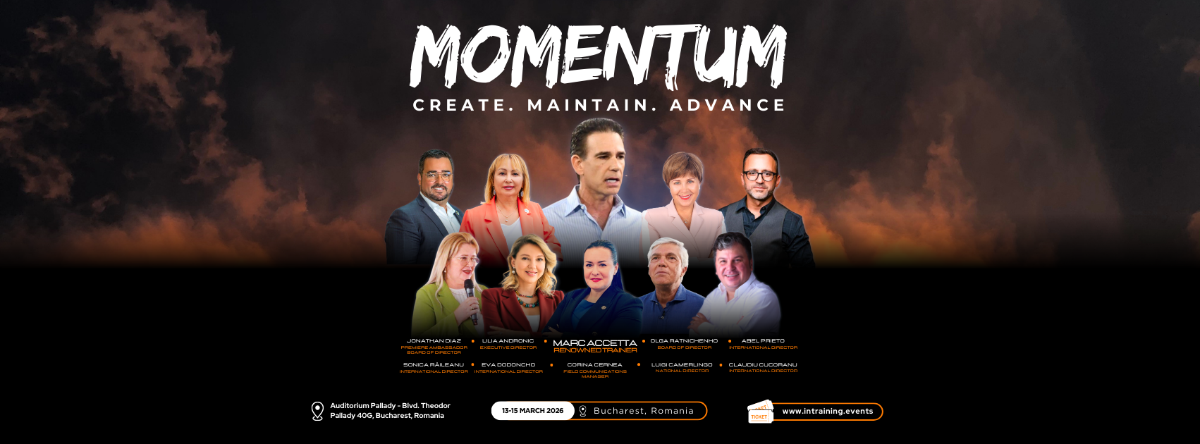 Momentum takes place on March 13–15, 2026, Auditorium Pallady (Bulevardul Theodor Pallady 40G) Bucharest, Romania